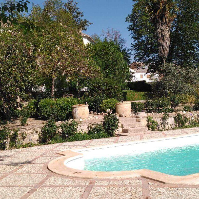 En el bajo tiene un molino de aceite del siglo XX, en un estado óptimo de conservación y un molino de harina movido por un salto de agua en proceso de restauración. Es de destacar en el jardín, árboles como tilos, nogales, caquis y castaños de indias con más de 100 años, entre los que contamos con uno, de la variedad de flores rojas, muy escaso, bello y apreciado por su singularidad. Disponemos de piscina salina, huerto ecológico, caballos de silla y enganche así como perros de pura raza Ratoneros Bodegueros Andaluces y gallinas de puesta y pluma. Con unas impresionantes vistas a Sierra Nevada y a Parapanda, hace que nos transportemos a lo exquisito de antaño, sin perder comodidad, estando en contacto total con el campo y la naturaleza.